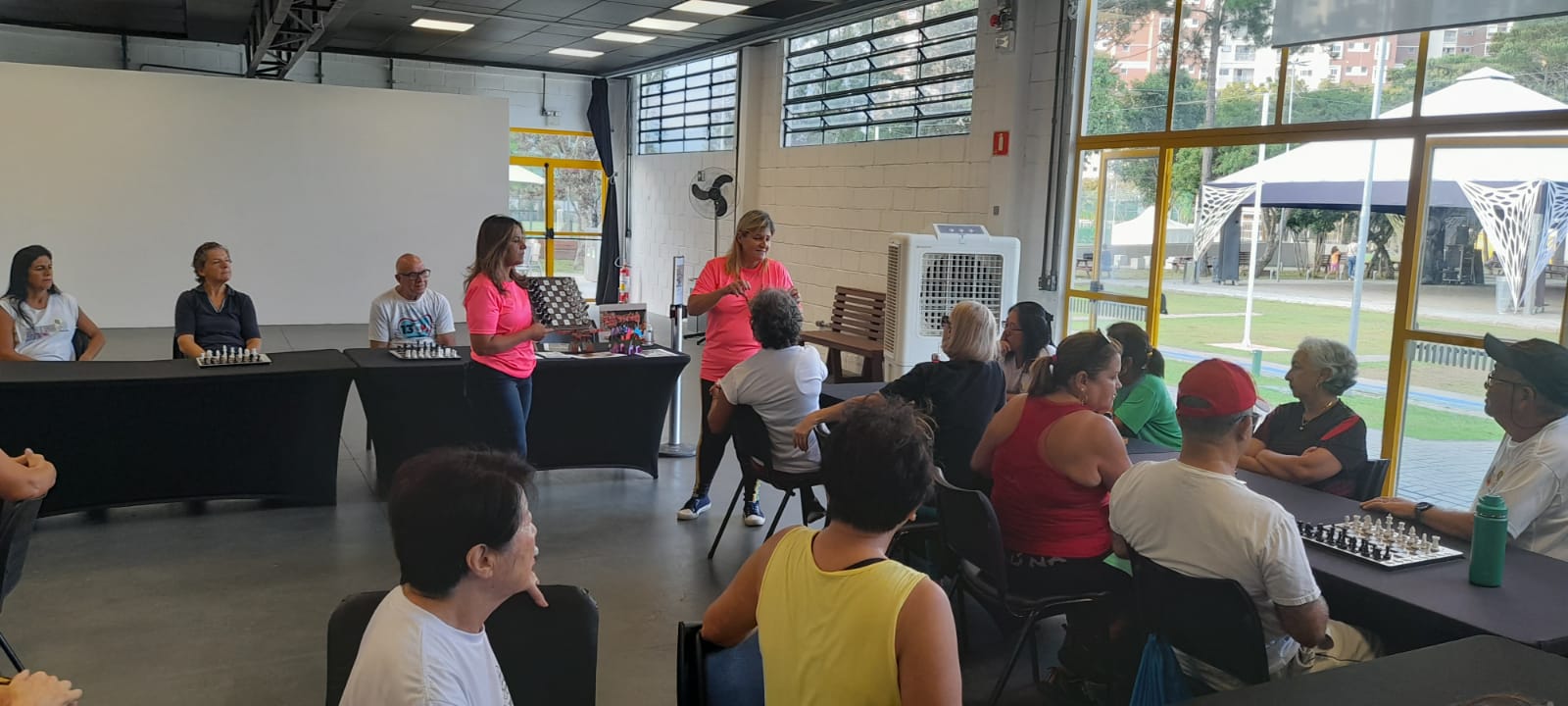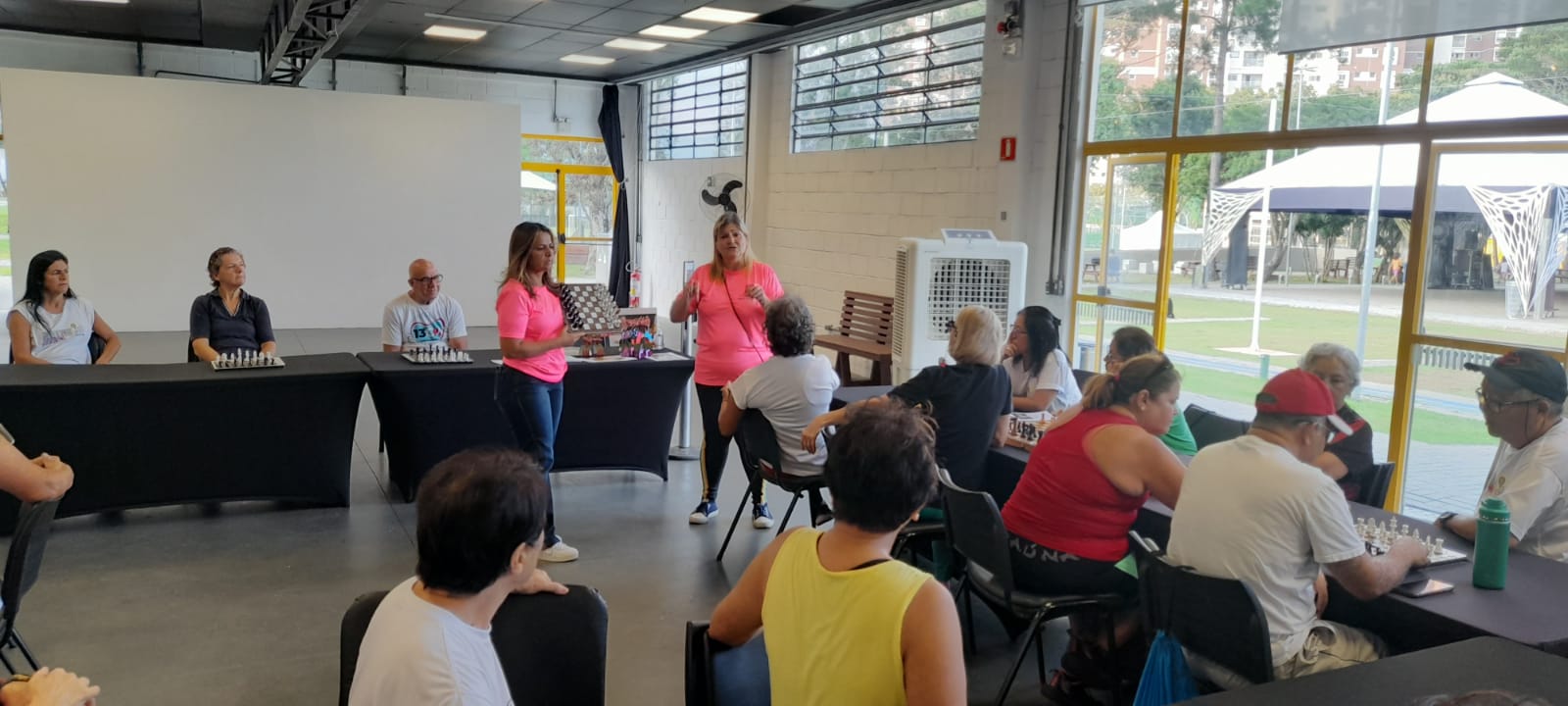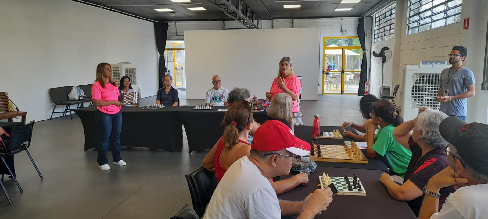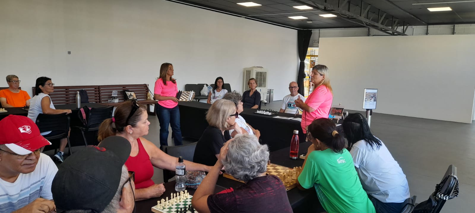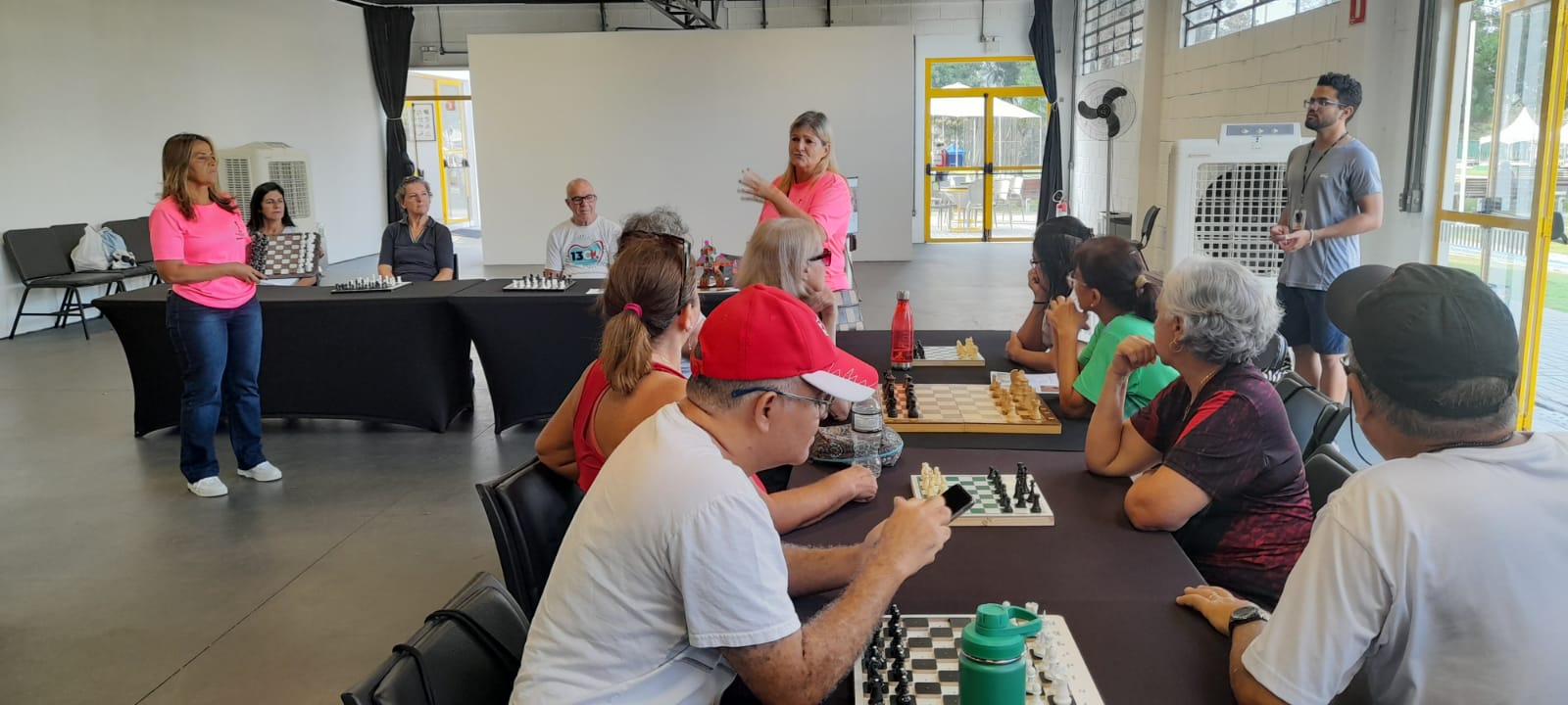 Evento promovido pelo Sesc Mogi das cruzes de vivência e inclusão do xadrez com a comunidade com crianças até idosos Publicado em: 21 de agosto de 2025 Navegação de PostPost anterior: mulheres enxadristas trabalhando em Mogi das cruzesPróximo post: Projeto em Juiz de Fora mostra que é possível jogar xadrez sem enxergar o tabuleiro